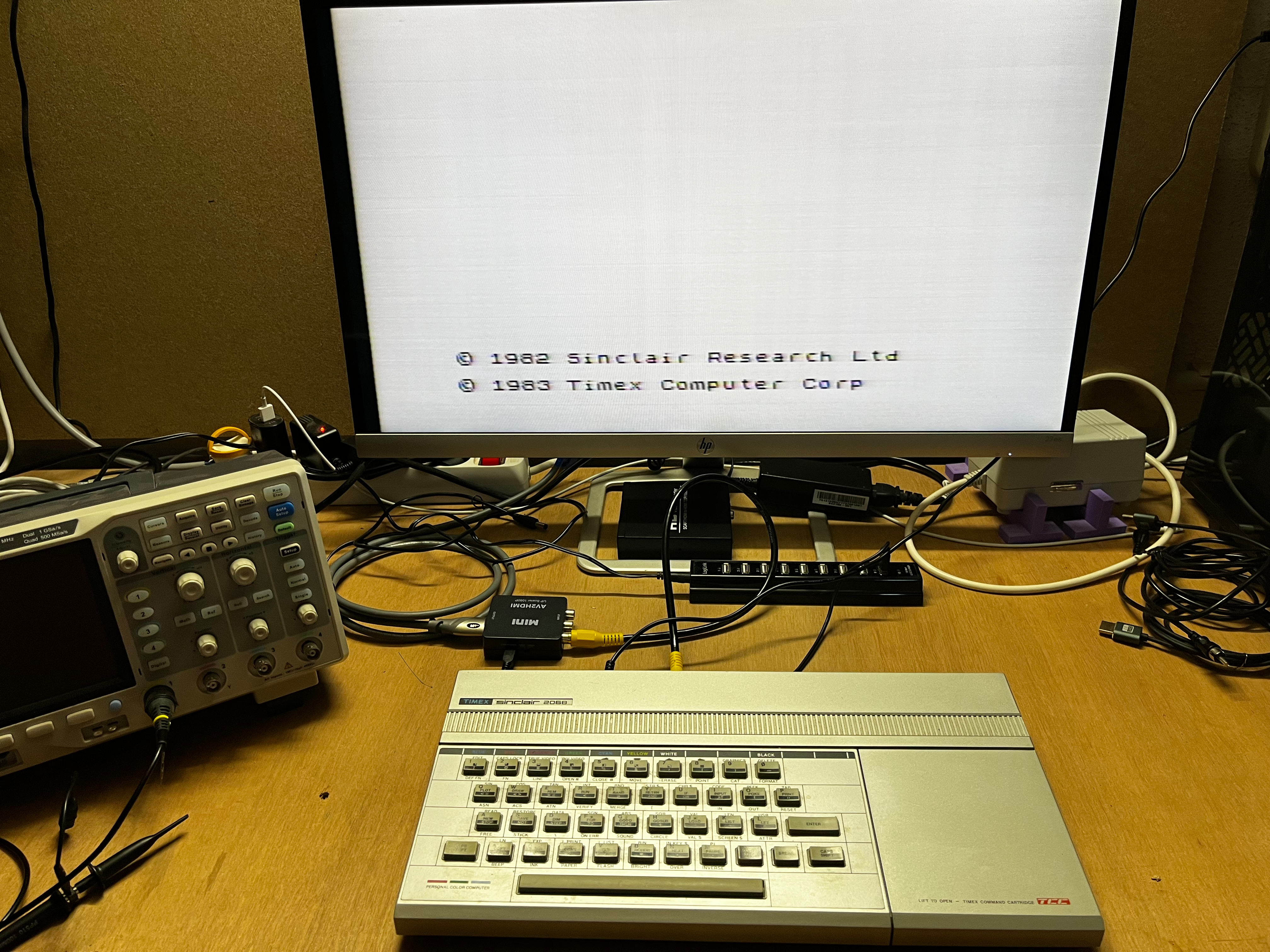 A ficha nem sequer entra. Não sei se o pino do jack está torto, ou se a ficha nos estados unidos é mesmo diferente. Vou-me inscrever num forum de utilizadores da Timex do tempo do Spectrum para fazer umas perguntas e ver como é que isto se liga.