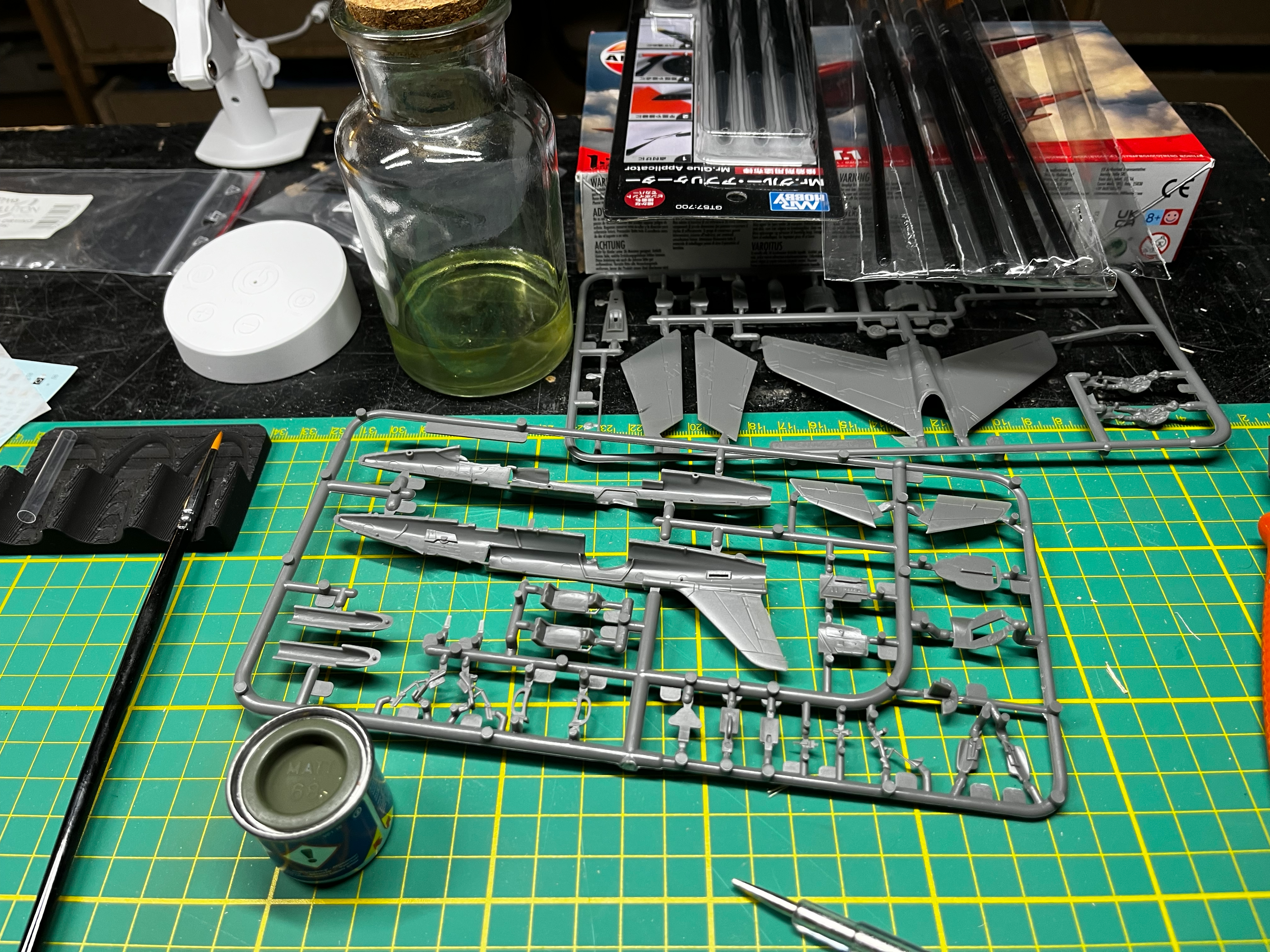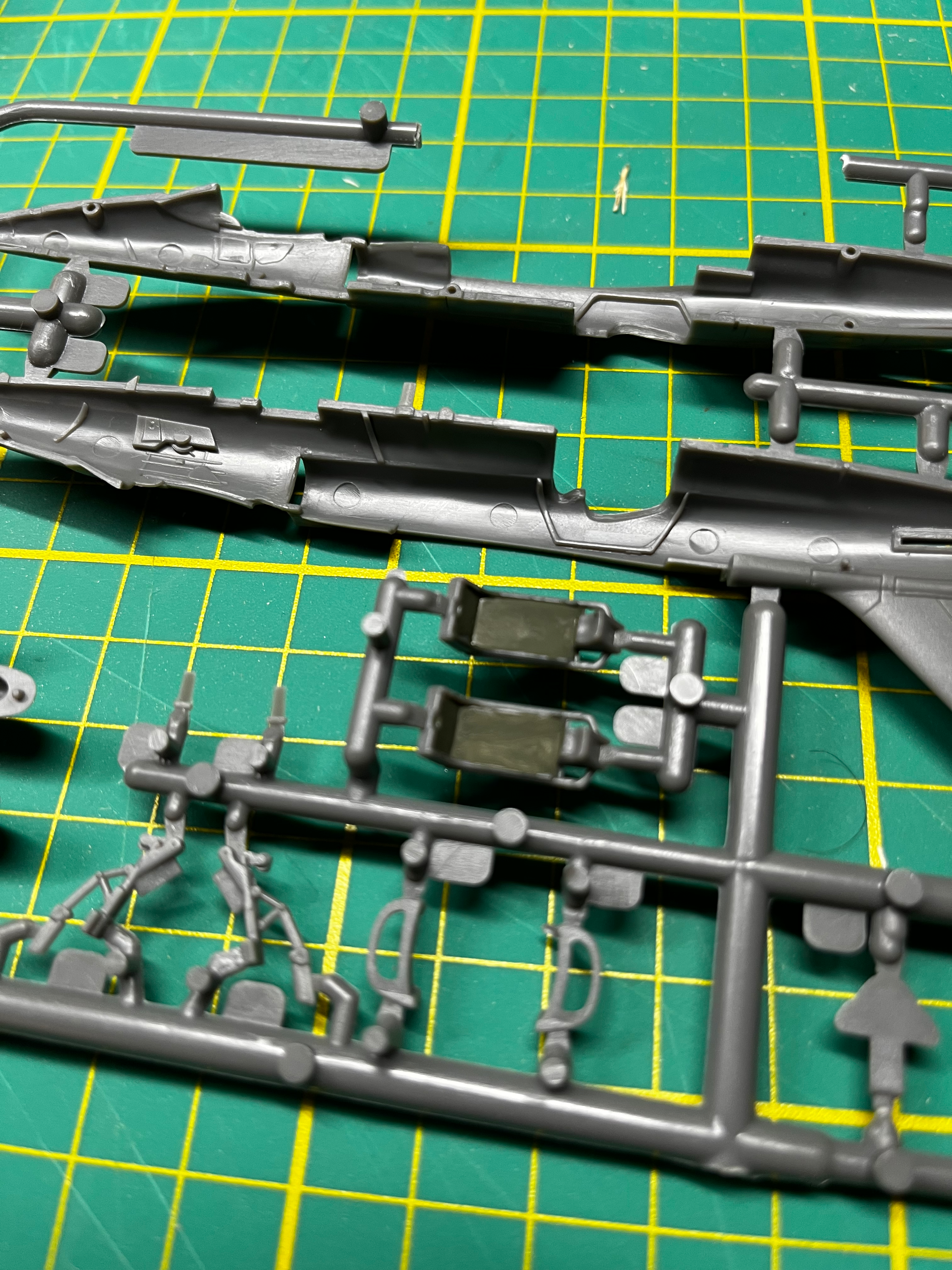 Comecei ontem a pintar o primeiro modelo que tenho na lista. As primeiras peças são as cadeiras dos dois pilotos. O assento é um verde, que por acaso não tenho a côr exata, mas tenho uma parecida, e como as cadeiras ficam dentro do avião, praticamente não se vêm, por isso não faz mal.