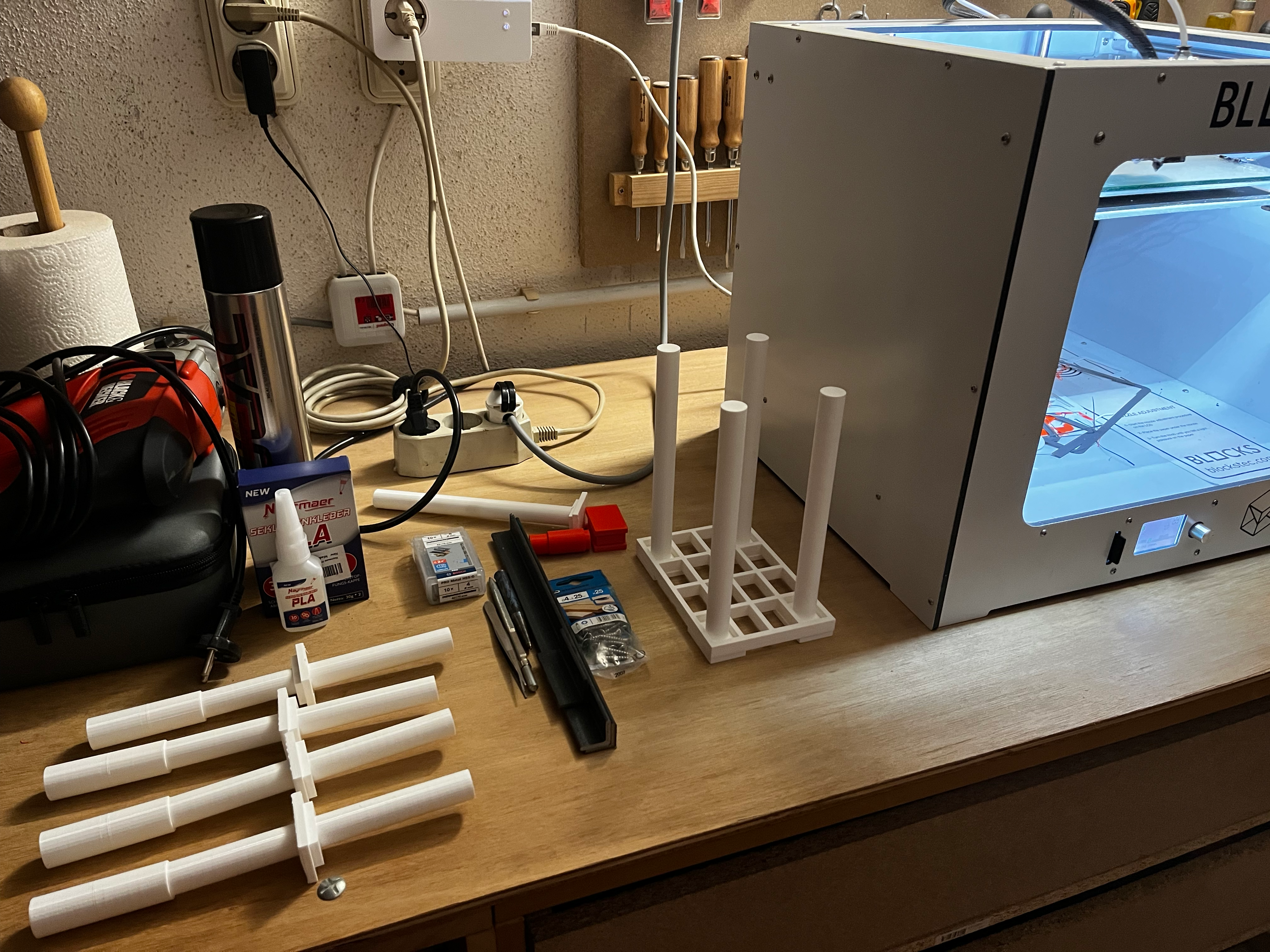 Estou a imprimir umas peças em plástico em 3D que quando todas elas montadas na totalidade vão dar uma estupenda estante de cozinha par eu pôr em cima do balcão.