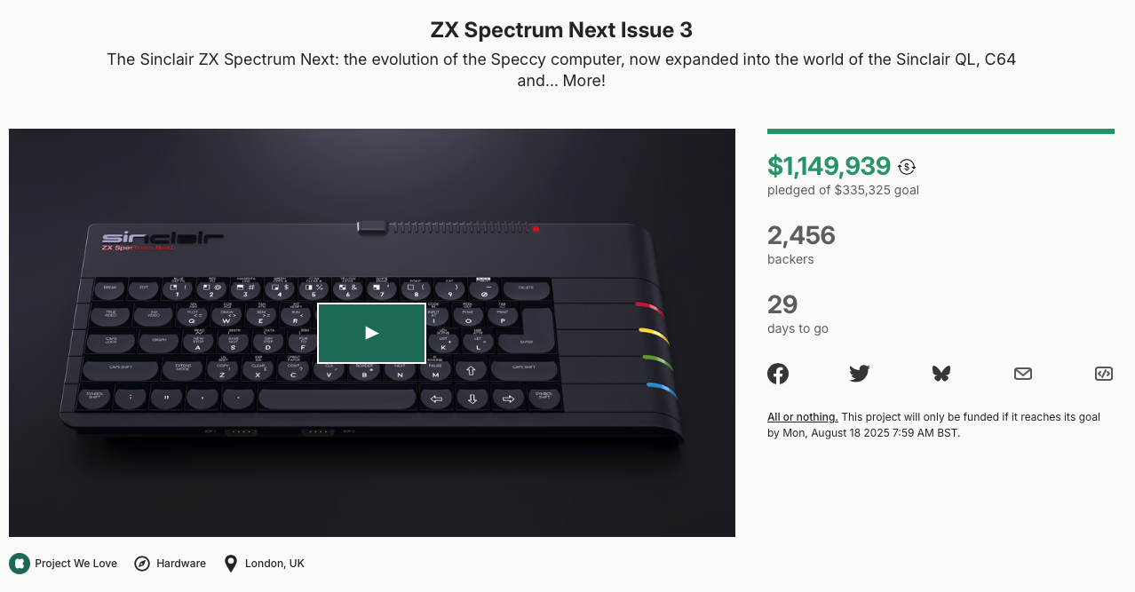 Hoje de manhã estava a dar uma olhada no Facebook, quando de repente me aparece um post acerca do kickstarter da terceira iteração do ZX Spectrum Next.